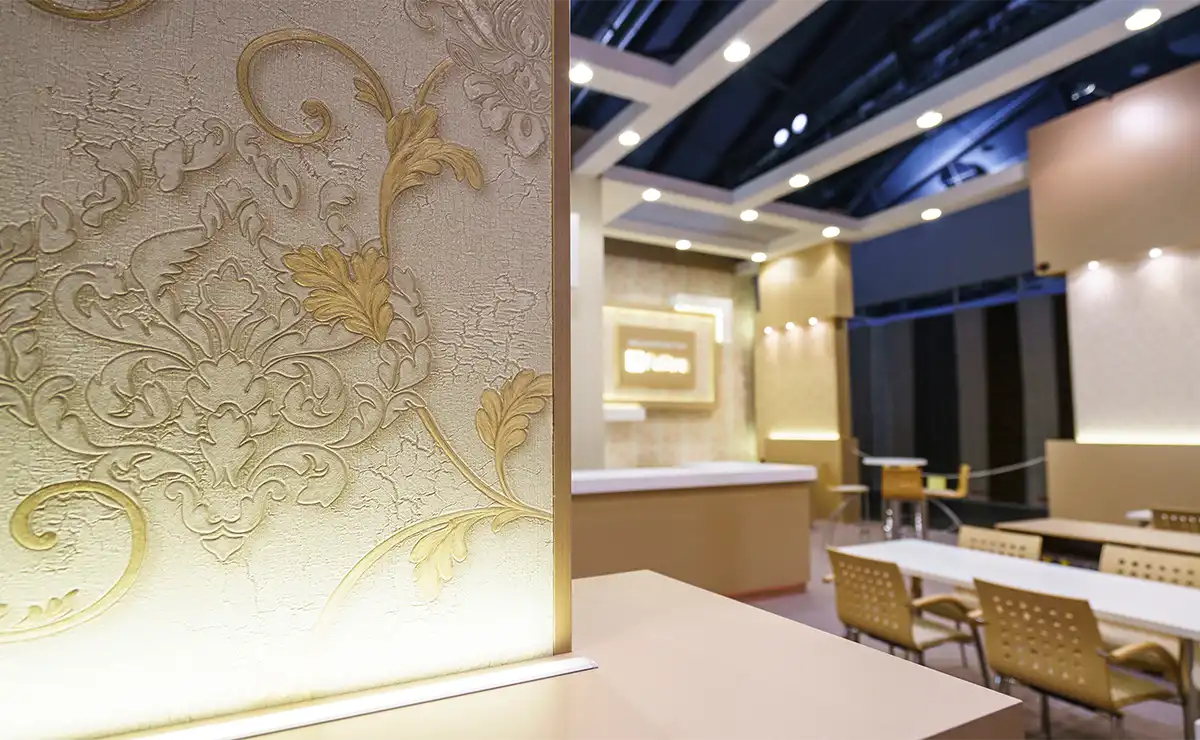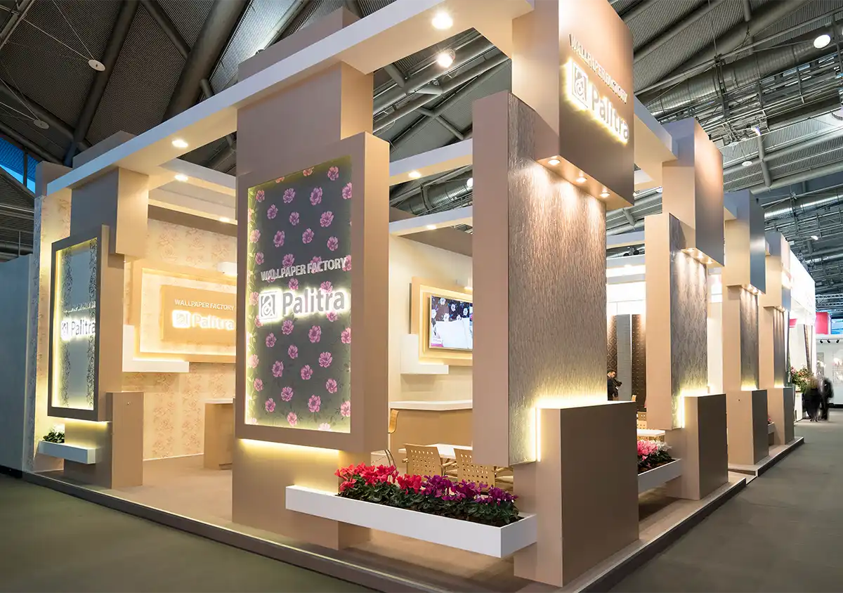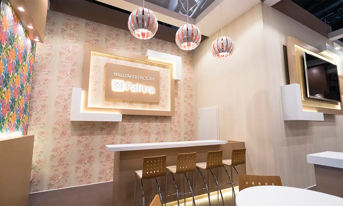 Der preisgekrönte Palitra Wallpaper Messestand 2016 vereinte Kunst, Design und Architektur zu einer beeindruckenden Präsentationsfläche. Die Tapeten selbst wurden integraler Bestandteil des Standkonzepts – nicht nur als Produkt, sondern als zentrales Designelement.